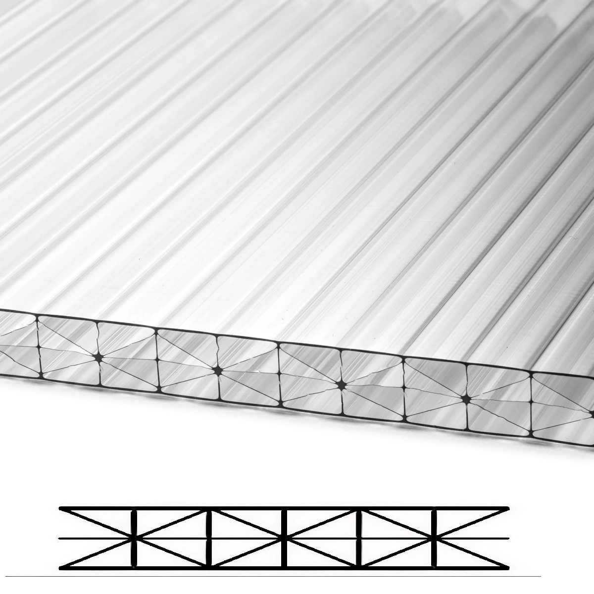 Poliwęglan komorowy 16 mm bezbarwny, 2,10 x 5,00 m (dociętę na odcinki 1,05 x 5,00 m) (struktura x-wall)